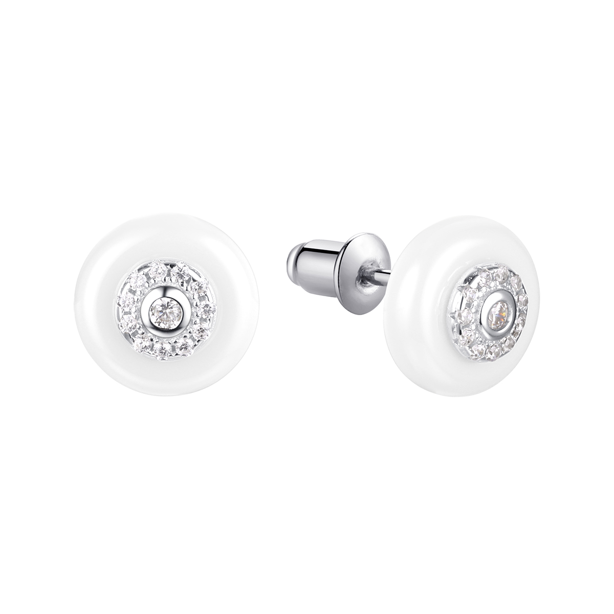 Минималистичные серьги из серебра с белой керамикой могут быть лаконичными и торжественными, органично дополнять повседневные и деловые образы или же стать изысканным аксессуаром к вечерним нарядам. Тип замка - пусет. Приобретайте интересные серьги с блеском прозрачных фианитов выгодно в ювелирных магазинах Мир Золота.