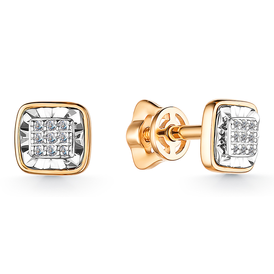 Стильные серьги-пусеты выполнены из красного золота 585 пробы с бриллиантами. Серьги квадратной формы декорированы эффектными вставками из белого золота с очаровательными бриллиантами. Серьги-пусеты в неоклассическом стиле с бриллиантами станут достойным завершением стильного повседневного образа. Приобретайте пусеты по выгодным ценам в магазинах Мир Золота.