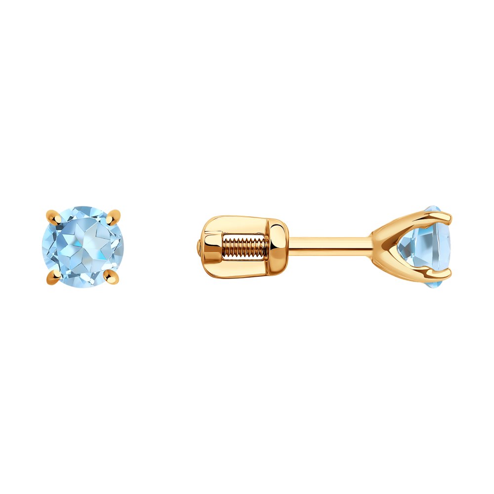 Элегантные серьги пусеты из красного золота 585 пробы с топазами. Миниатюрные пусеты лаконичного дизайна дополнены великолепными голубыми топазами. Очаровательные серьги сделают образ владелицы особенно нежным и привлекательным. Универсальное украшение на каждый день подойдет к любому гардеробу. Приобретайте серьги пусеты по выгодным ценам в магазинах Мир Золота.