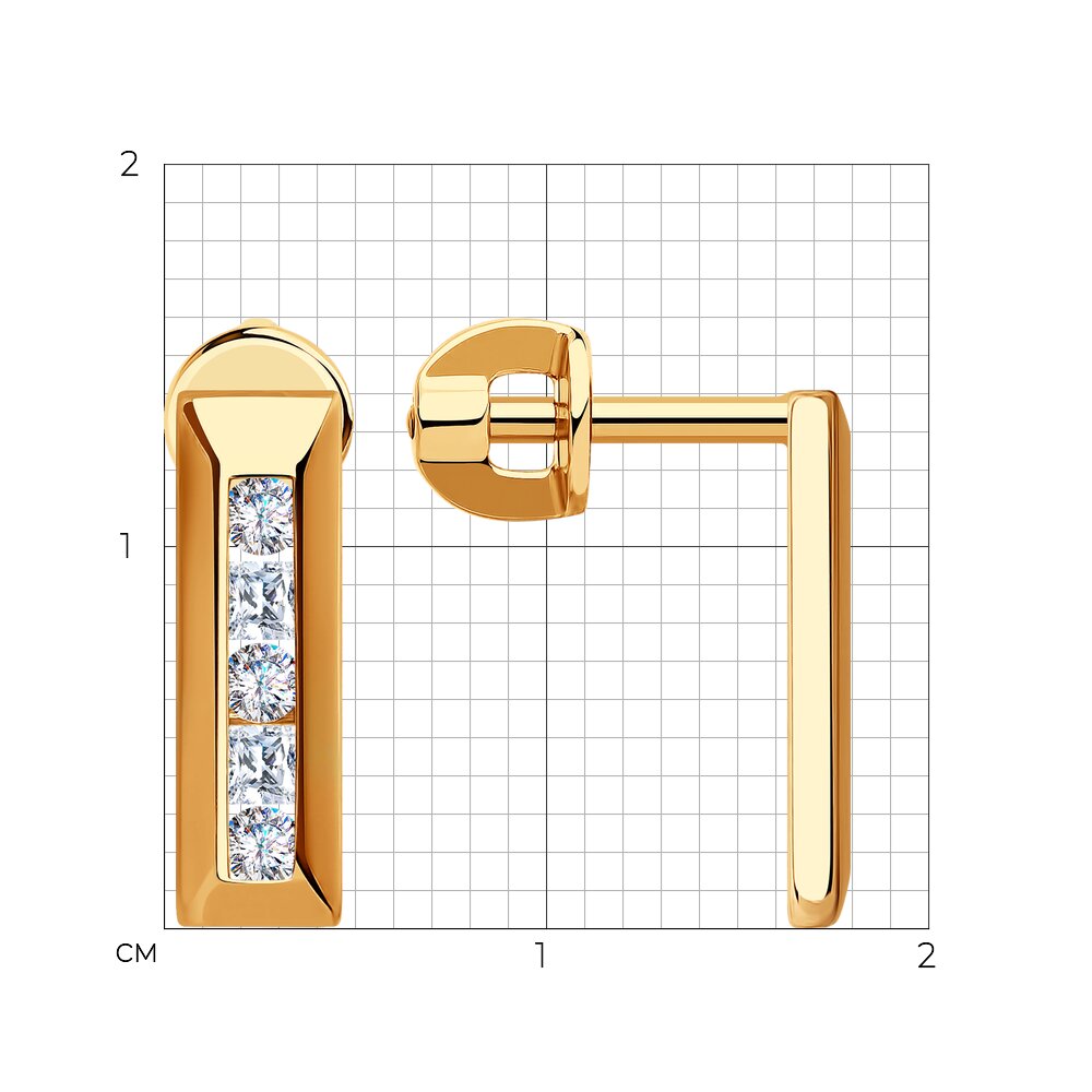 Стильные серьги-пусеты из красного золота 585 пробы декорированы дорожками кристальных фианитов. Строгий дизайн для поклонниц лаконичных форм будет актуальным дополнением динамичных современных образов. Приобретайте ювелирное украшение SOKOLOV для своей коллекции или в подарок по выгодным ценам в магазинах Мир Золота.