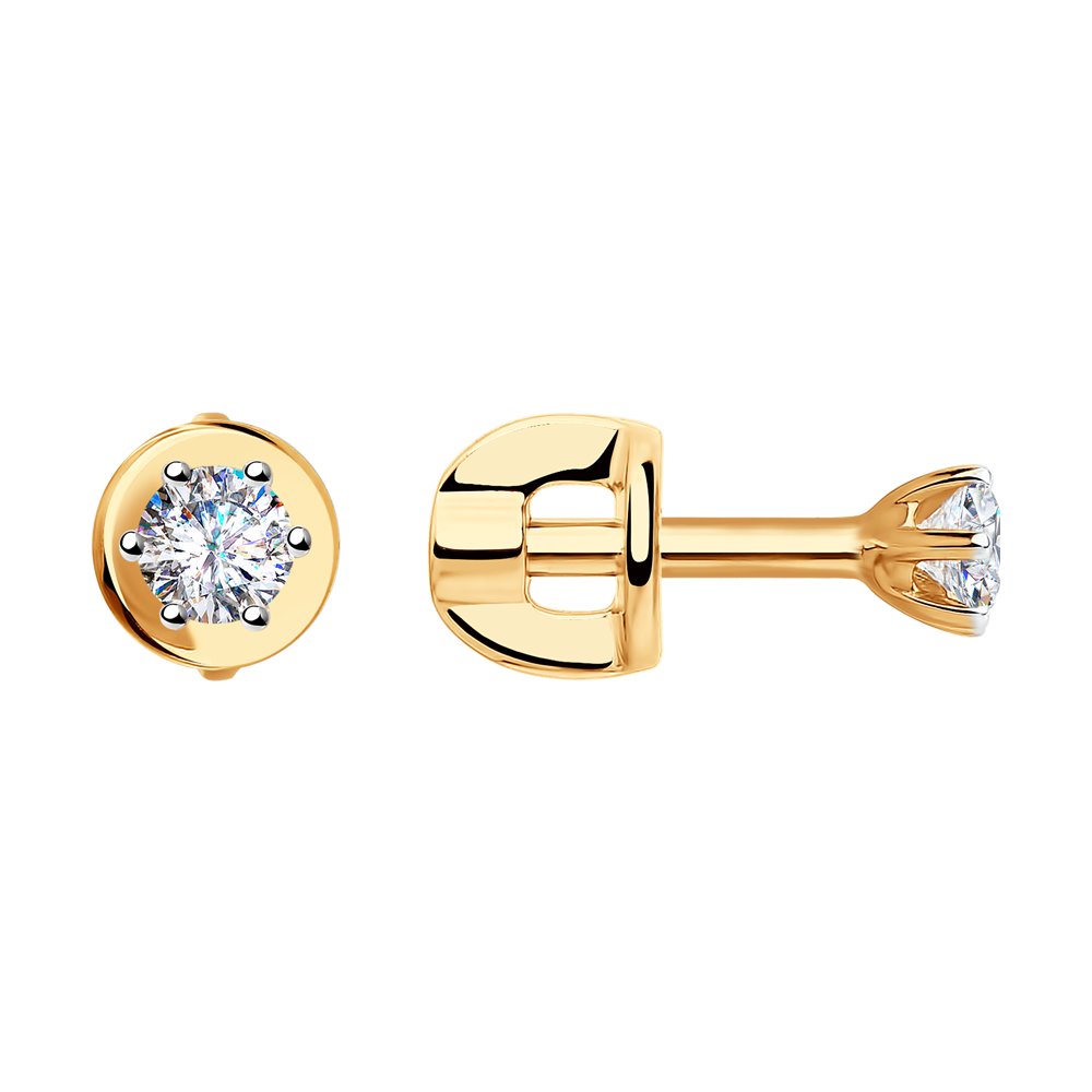 —Серьги пусеты из красного золота с фианитами