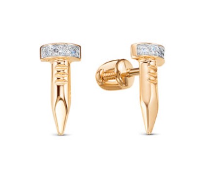 Изящные серьги пусеты из красного золота выглядят стильно и современно. Форма гвоздя придает аксессуару брутальность и особый характер, что отличает его от традиционных моделей. Центральный элемент каждой серьги украшен сверкающими фианитами, который придает особенный блеск и визуально увеличивает объем украшения. Такие серьги будут гармонически смотреться как с деловым костюмом, так и с романтичным платьем, становясь оригинальным штрихом в вашем облике.