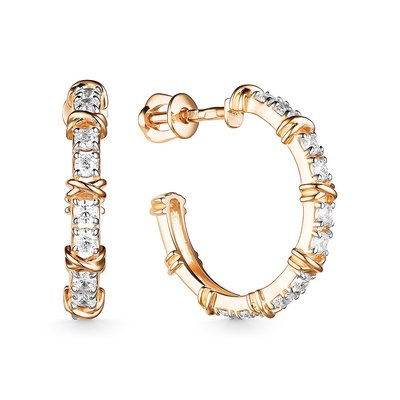 —Серьги пусеты из красного золота с фианитами
