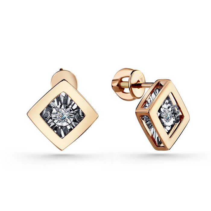 Серьги-пусеты из красного золота с танцующим бриллиантом