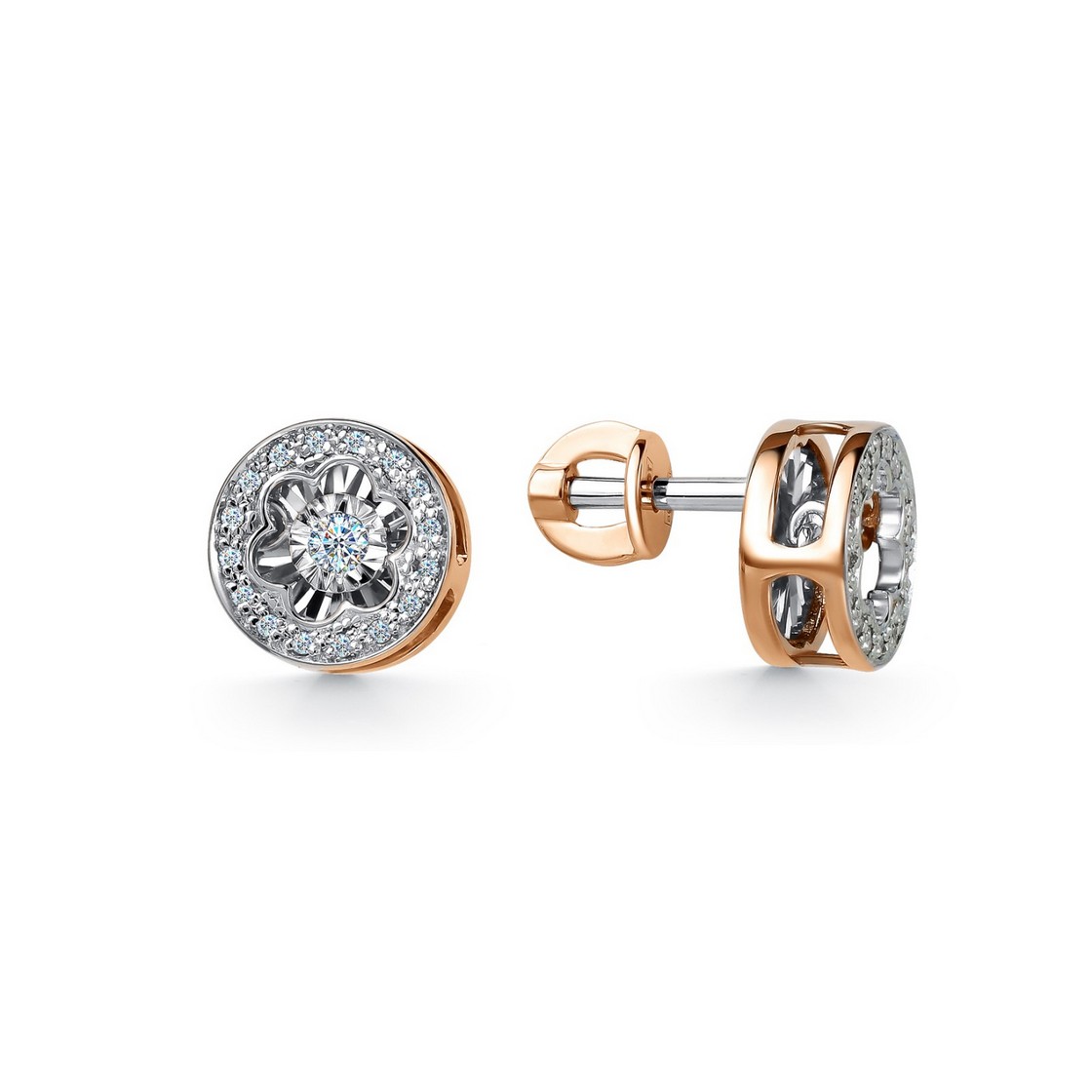 —Серьги пусеты из красного золота с танцующим бриллиантом