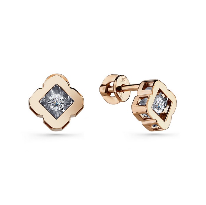 —Серьги-пусеты из красного золота с танцующим бриллиантом