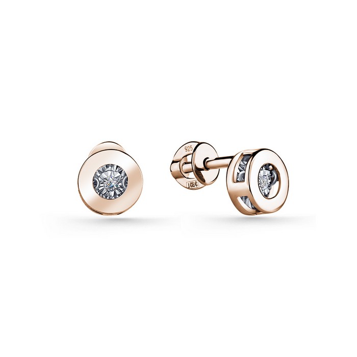 —Серьги-пусеты из красного золота с танцующим бриллиантом