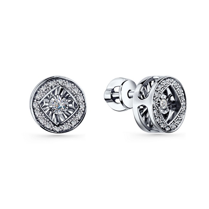 —Серьги-пусеты из белого золота с танцующим бриллиантом