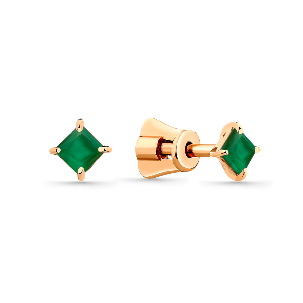 Серьги-пусеты из красного золота с агатом