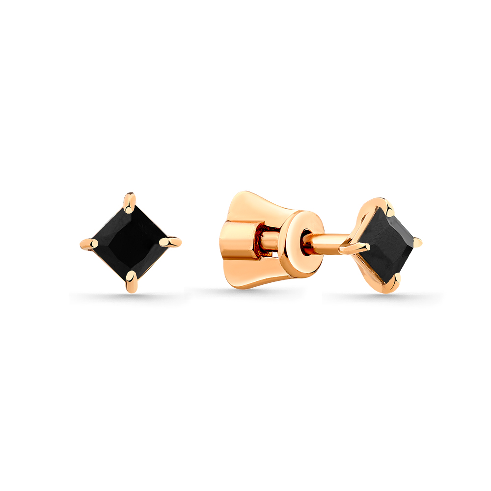 Серьги пусеты из красного золота с блестящей шпинелью в четкой огранке квадрат демонстрируют идеальную комбинацию роскоши и минимализма. Контрастное сочетание подчёркивает элегантность и статус владелицы. Небольшой аккуратный размер делает серьги удобными для повседневной носки, а оригинальная форма позволяет дополнить лаконичный гардероб ярким ювелирным штрихом.