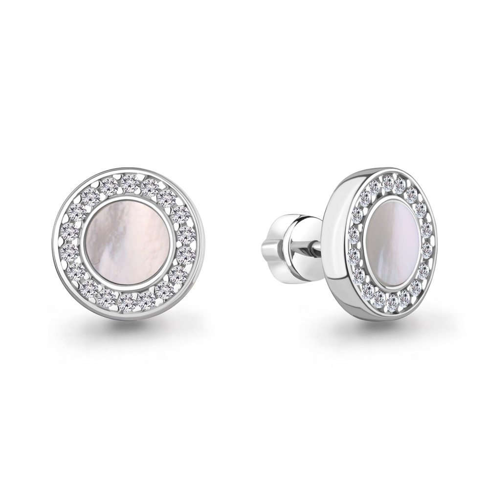 —Серьги-пусеты из серебра с перламутром и фианитами