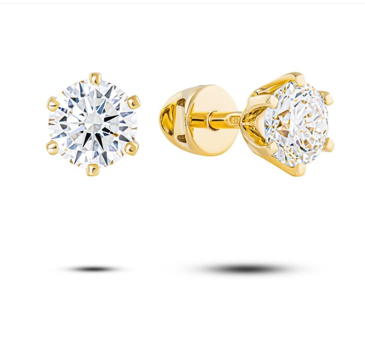 —Серьги пусеты из желтого золота с бриллиантами