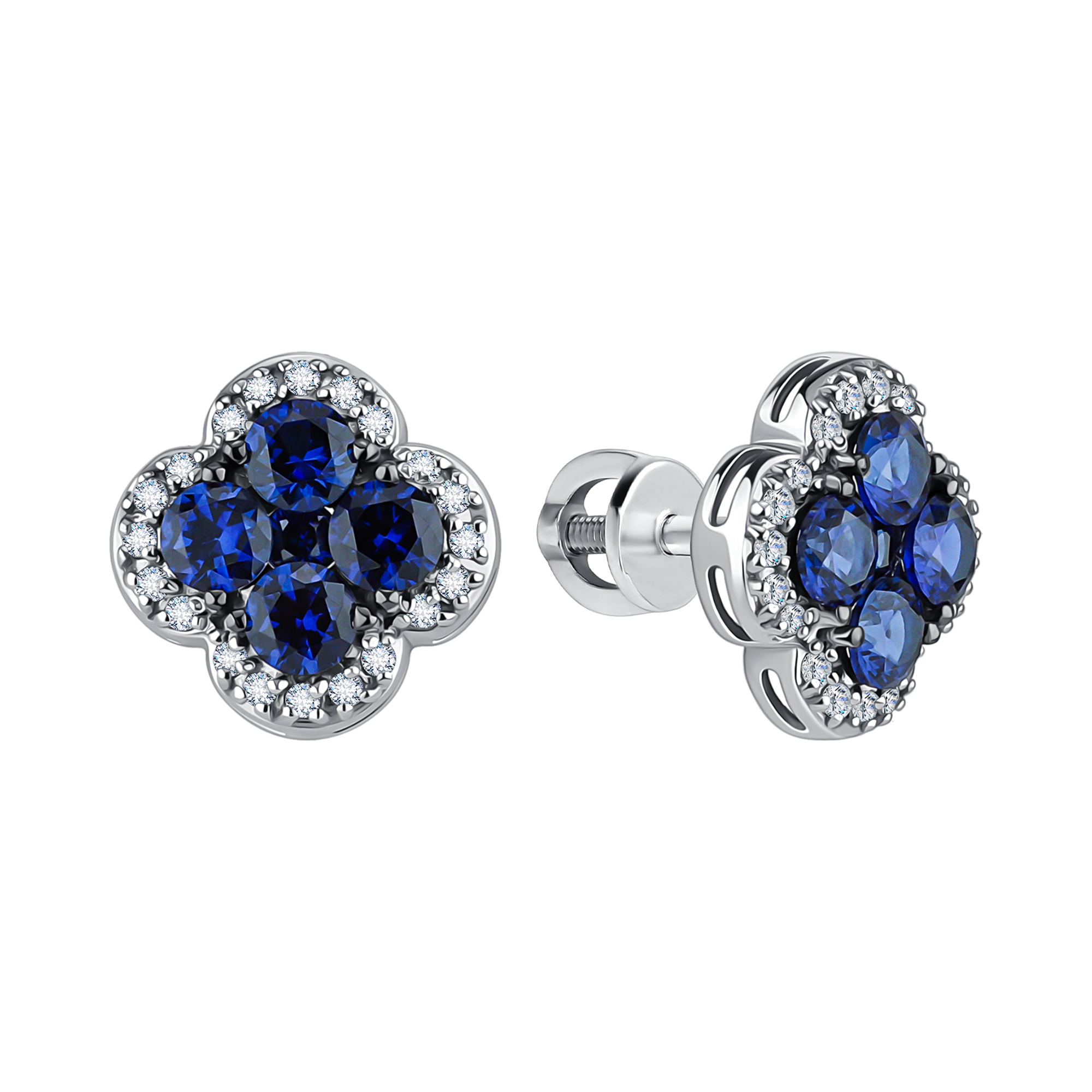 —Серьги пусеты из белого золота с бриллиантами и сапфирами