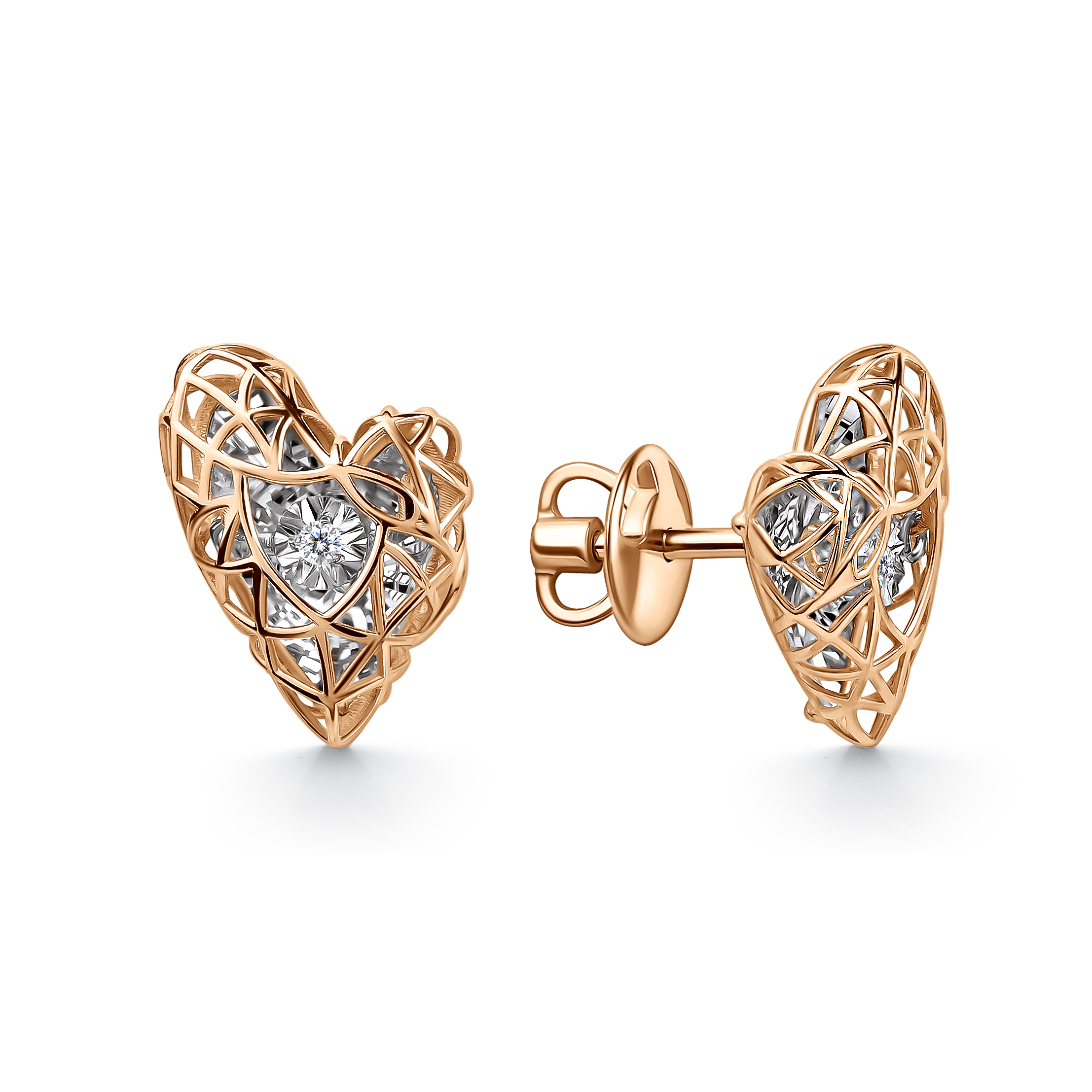 Пусеты из благородного красного золота поражают тонким дизайном и магическим эффектом танцующего бриллианта. Внутри сердца нежно переливается алмаз, мерцающий живым огнем при любом движении. Благодаря оригинальной технологии закрепления, камень совершает едва уловимый танец, притягивая взгляд удивительным свечением. Золото лишь подчеркивает совершенство игры световых бликов, превращая серьги в настоящее произведение ювелирного искусства.
