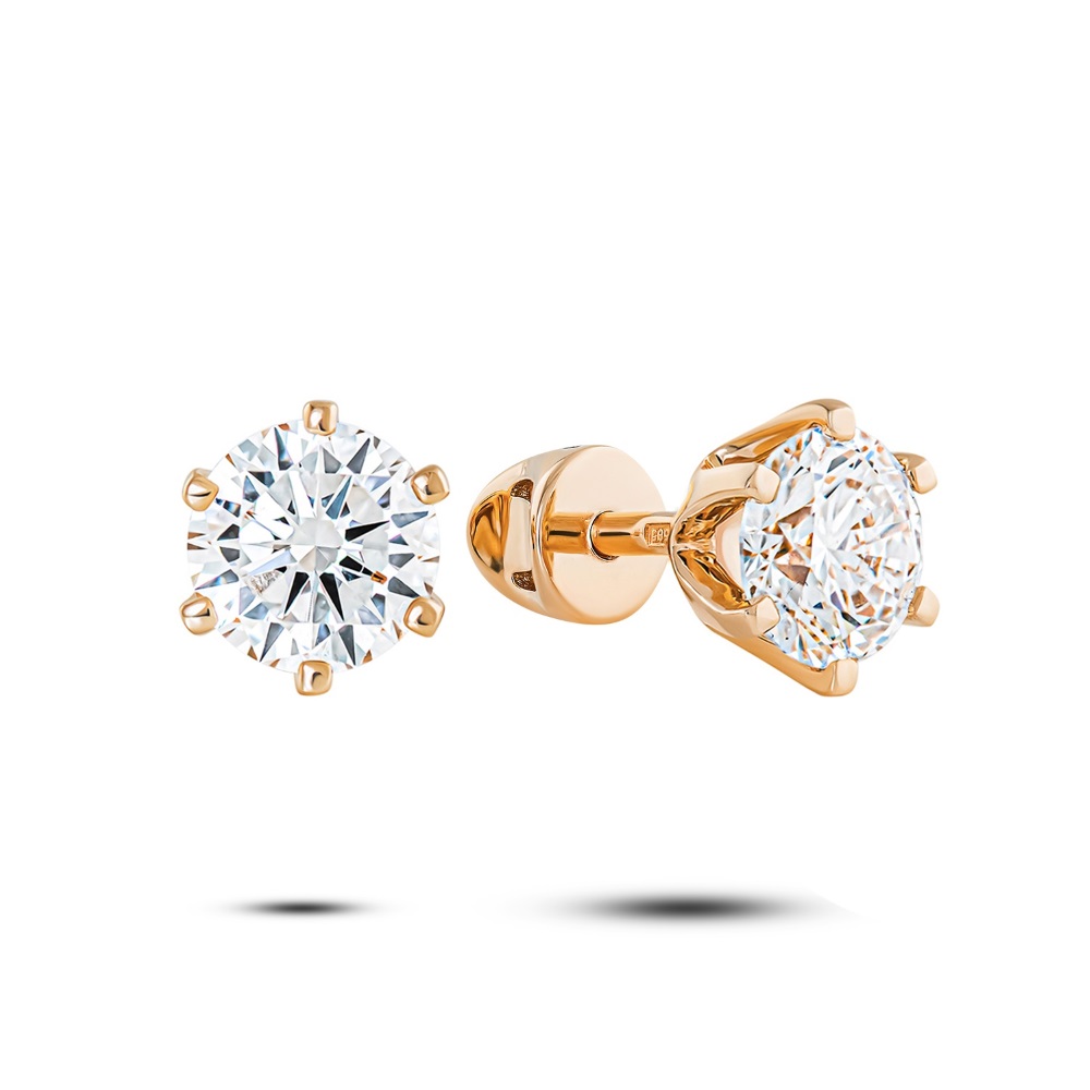 —Серьги пусеты из красного золота с бриллиантами