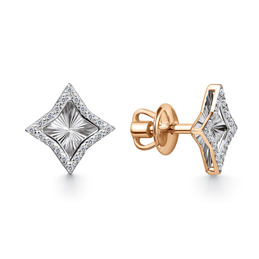 —Серьги пусеты из красного золота с бриллиантами