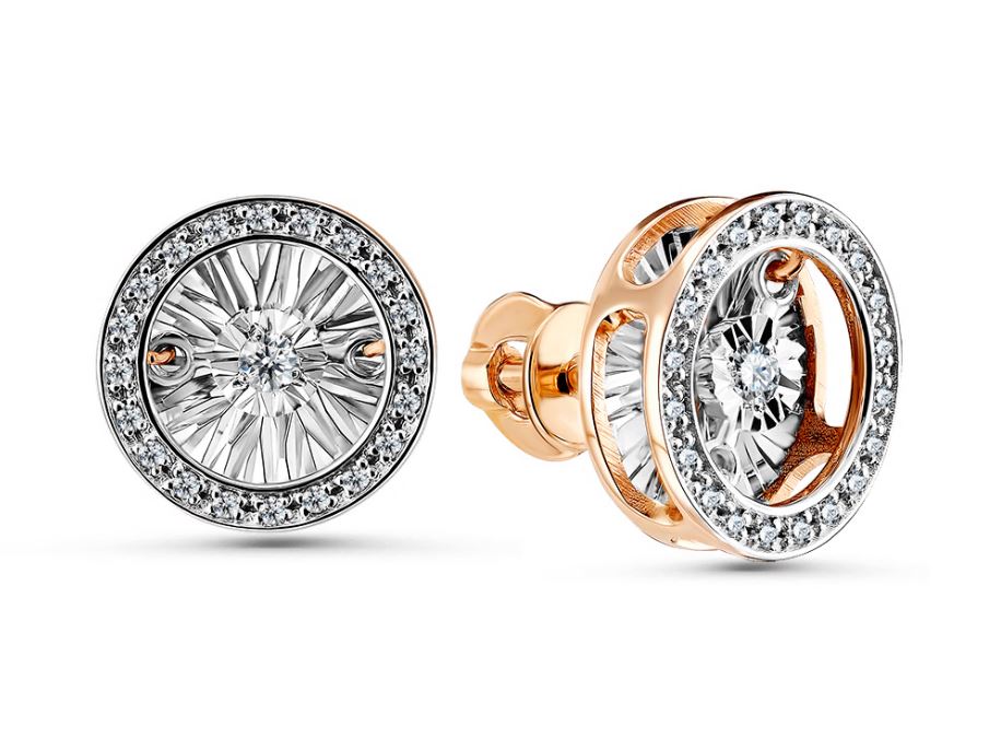 —Серьги пусеты из комбинированного золота с бриллиантами