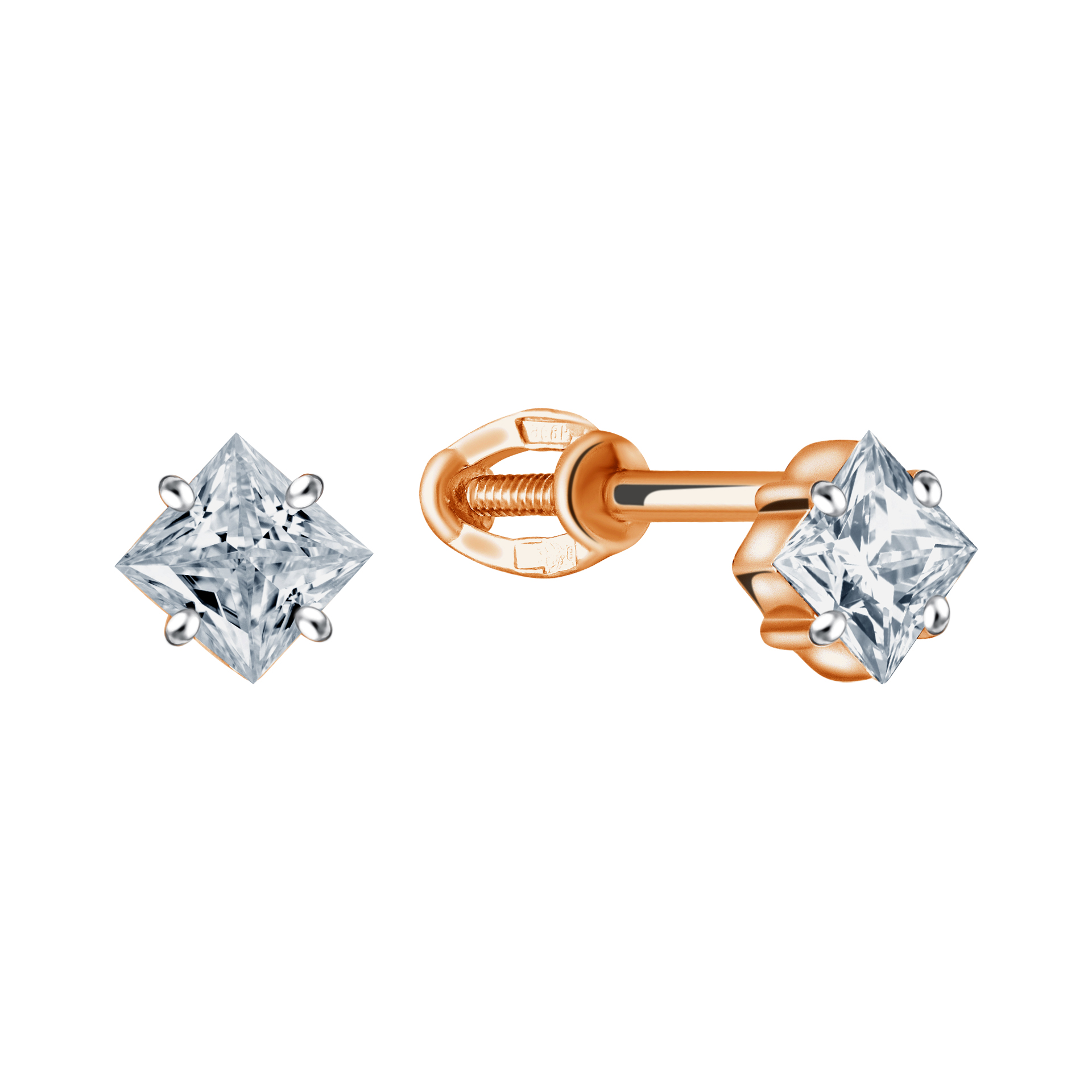 —Серьги пусеты из красного золота с фианитами