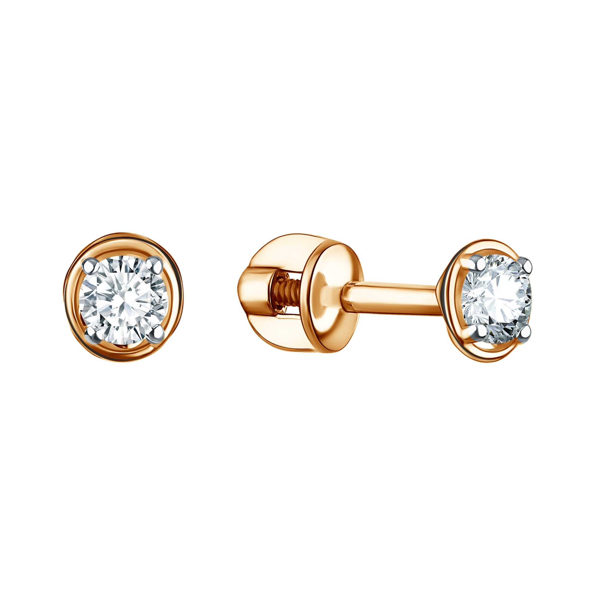 —Серьги пусеты из красного золота с фианитами