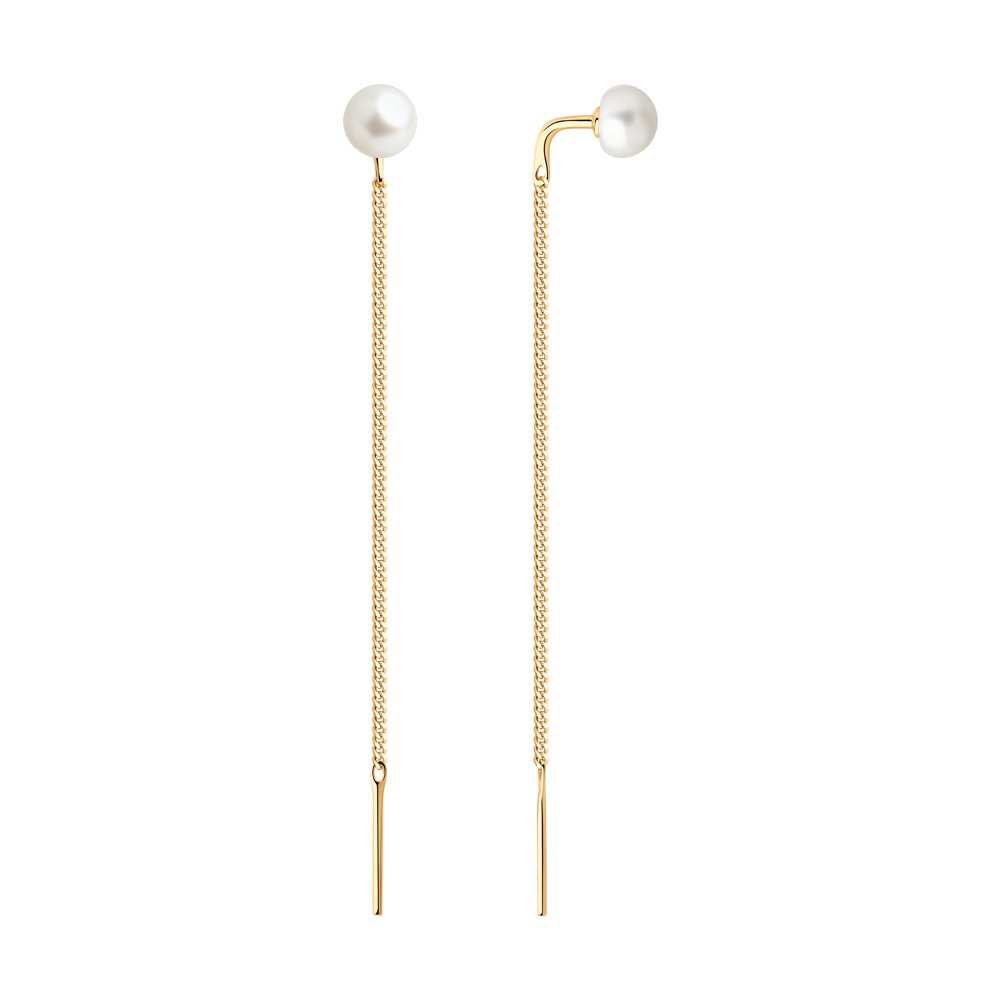 Привлекательные серьги из красного золота с пресноводным жемчугом. Аккуратные нежные серьги-цепочки с красивым жемчугом белого цвета добавят женственному образу легкости и очарования. Серьги станут любимым украшением, и гармонично дополнят повседневный образ. Приобретайте золотое украшение по выгодной цене в магазинах Мир Золота.