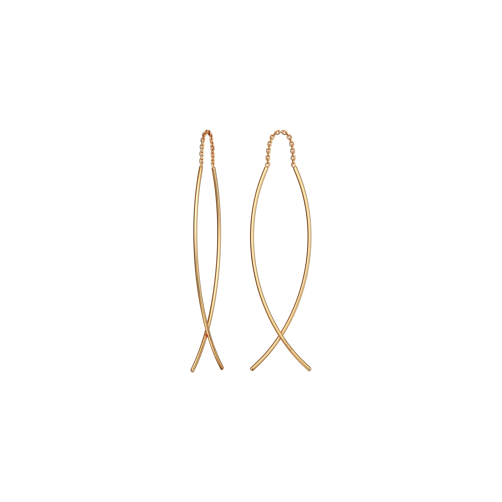 Серьги-протяжки из красного золота напоминают по форме рыбку. Украшение выглядит очень женственно и добавляет легкости и воздушности образу. Благодаря лаконичному дизайну, серьги не потеряют с годами своей актуальности и впишутся в абсолютно любой стиль. Они подходят как для повседневного ношения, так и для особых случаев, добавляя элегантности и шика к любому наряду. Серьги представлены ювелирным брендом KRASTSVETMET.