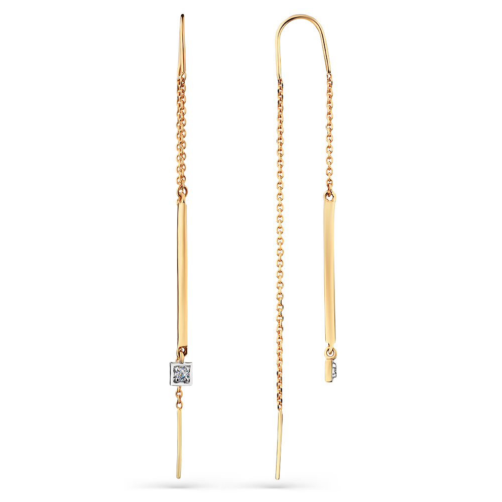 Стильные серьги-продёвки из красного золота 585 пробы с прозрачными фианитами выглядят современно и элегантно. Серьги-цепочки станут универсальной моделью в женском гардеробе, и подчеркнут красоту и утонченность выбранного образа. Приобретайте ювелирное украшение в подарок по привлекательной цене в магазинах Мир Золота.