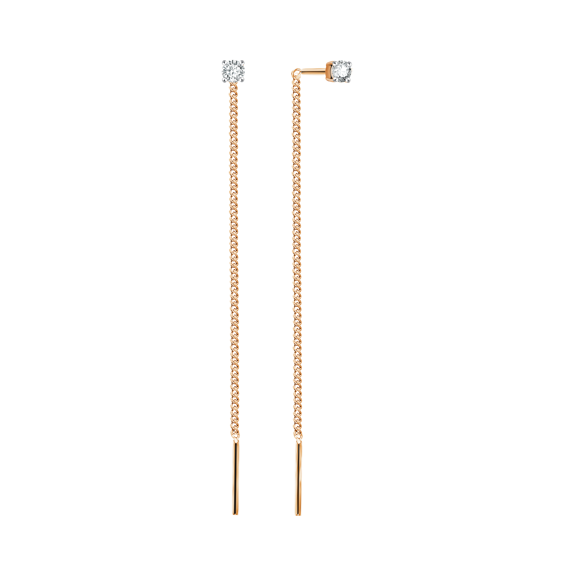 Серьги-цепочки выполнены из красного золота 585 пробы и эффектно украшены яркими круглыми фианитами. Благородный блеск теплого золота выгодно подчеркивает обворожительное сияние камней. Утонченные серьги станут выразительным акцентом в привлекательном образе современной леди. Приобретайте золотые серьги по выгодным ценам в Мир Золота.