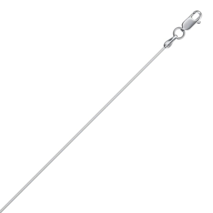 Полновесная цепочка с плетением Снейк выполнена из родированного серебра 925 пробы. Плетение составляют плотно подогнанные звенья, ограненные в правильную геометрическую форму. Прочная, но гибкая цепочка прекрасно смотрится, и практически не перекручивается в движении. Покрытие родием препятствует потемнению серебра и придает дополнительный блеск украшению. Приобретайте серебряную цепь по выгодной цене в магазинах Мир Золота.