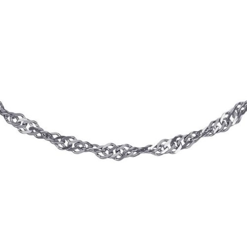 Цепочка женская с популярным панцирным плетением Сингапур, из родированного серебра 925 пробы с алмазной огранкой. Нежное ажурное плетение отлично смотрится, и эффектно переливается на свету. Цепочка с фактурным плетением отлично подойдет под большинство подвесок. Защитное покрытие препятствует потемнению серебра и сохраняет благородный вид изделия. Приобретайте замечательное украшение выгодно в магазинах Мир Золота.