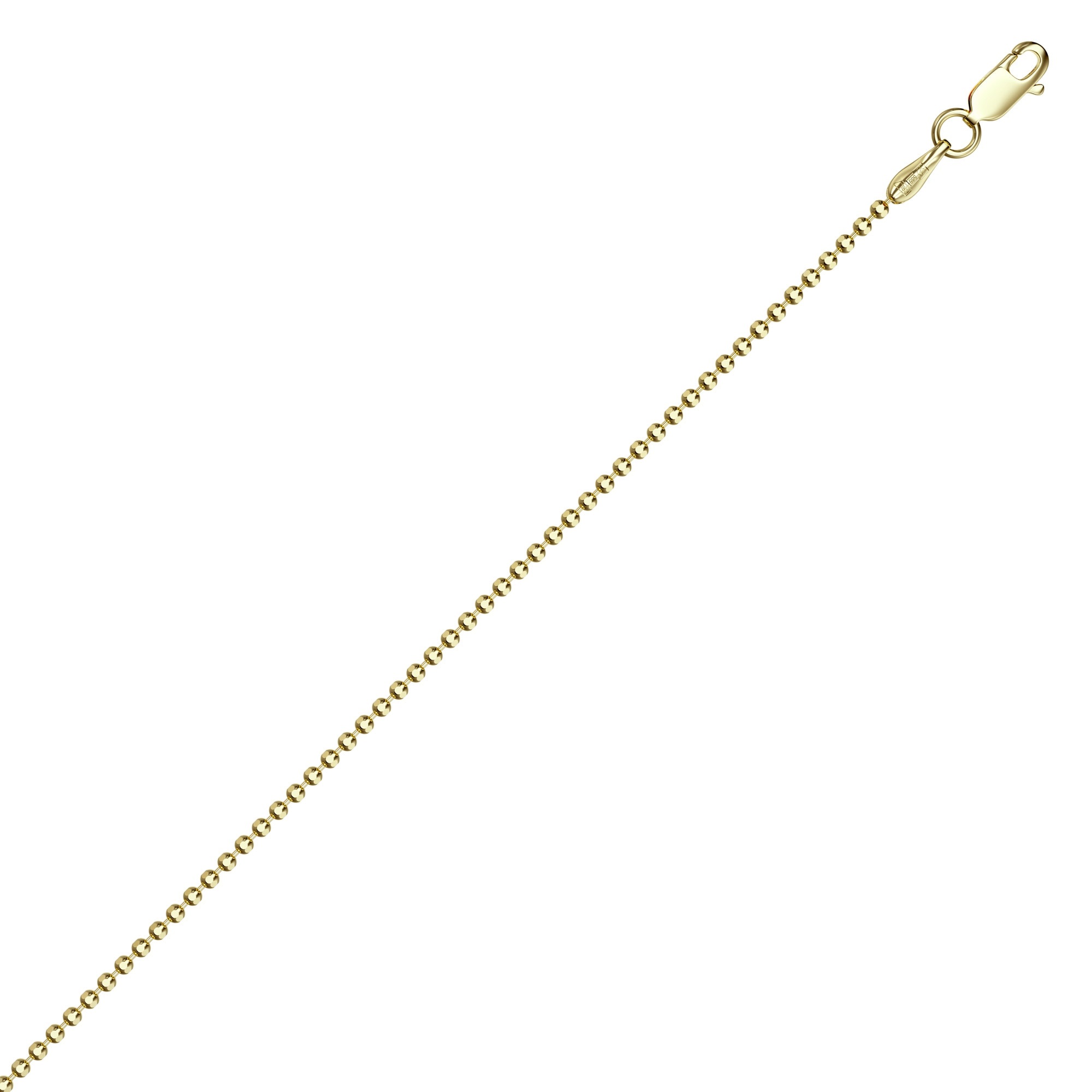 Цепь из желтого золота 585 пробы плетения Перлина из одинаковых шариков с нанесенными на них алмазными насечками станет приятным дополнением к безупречному образу. Шариковую цепочку из желтого золота часто используют под армейский жетон, поэтому она станет хорошим подарком для мужчины. Украшение представлено ювелирным брендом Krastsvetmet. Купите золотую цепь по выгодной цене для себя или в подарок в магазинах Мир Золота.