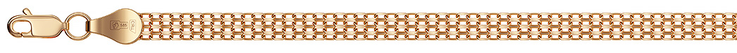 Безупречная полновесная цепь из красного золота 585 пробы выглядит роскошно, но в то же время сдержанно и уместно. Популярное плетение двойной Бисмарк погружает в мир непревзойденного сияния. Данная модель является универсальной для женщин и мужчин. Тип замка - карабин, самый надежный и удобный. Купите золотую цепь ювелирного бренда АДАМАС по выгодной цене для себя или в подарок в магазинах Мир Золота.