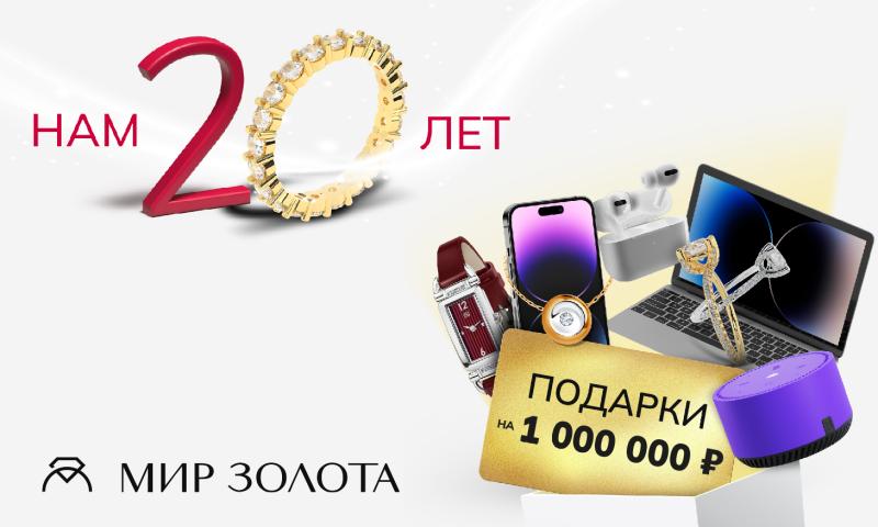 Нам 20 лет! В честь праздника мы дарим подарки на 1 000 000 ₽! Мы разыграем целых 200 подарков, среди которых: